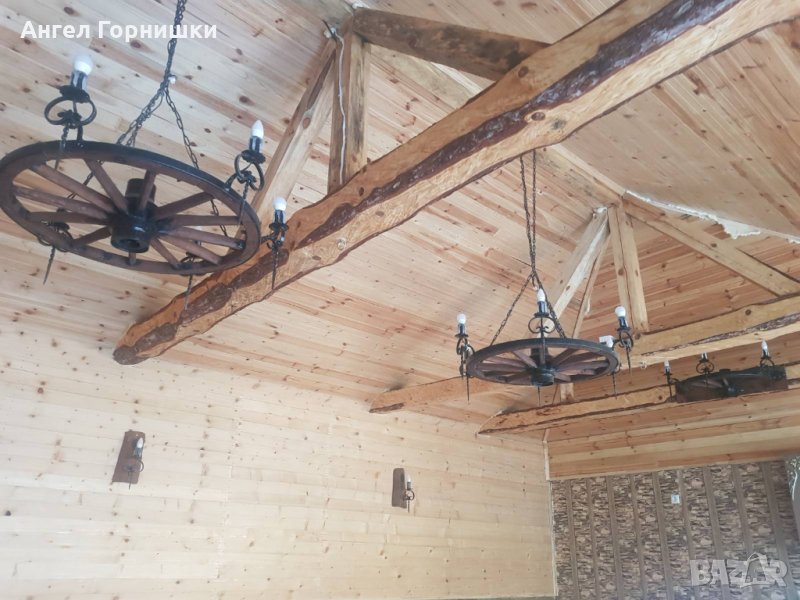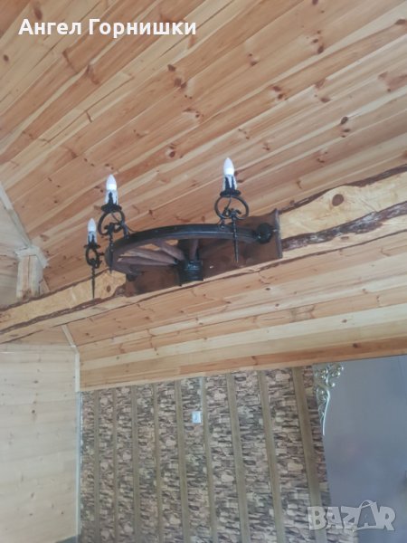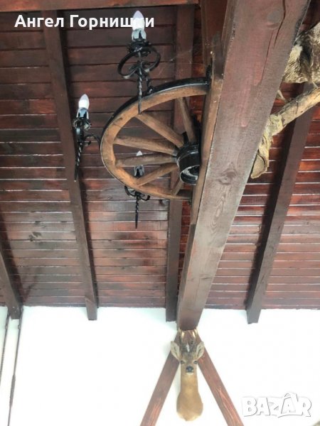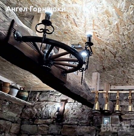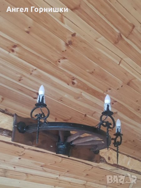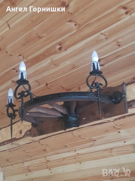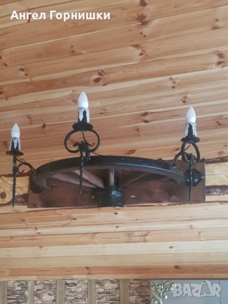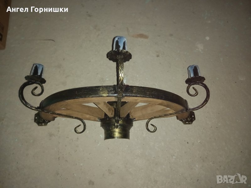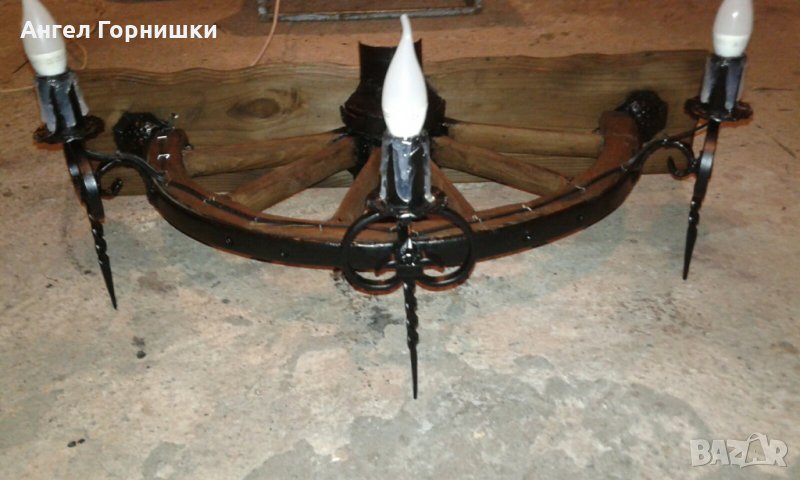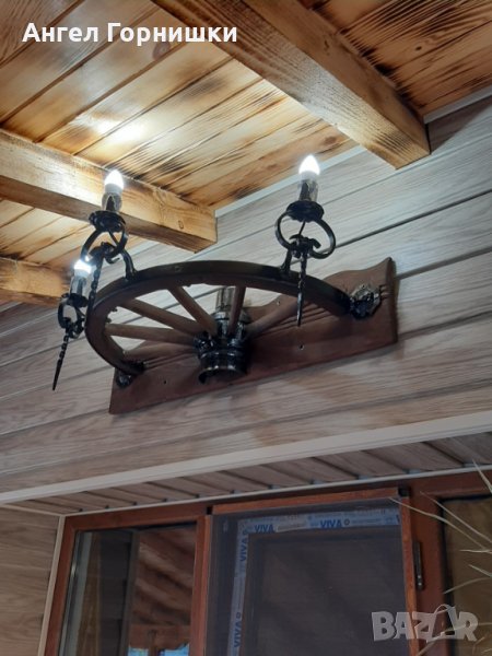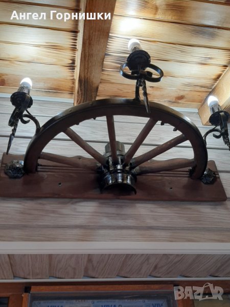 Стенна лампа от автентично колело на каруца с ковано желязо!Лампата е с три светлини и фасунга Е14.Кабела е на лустер клема на гърба!Цената и варира от 209.28лв.(107e) до 264.05лв.(135е) според изпълнението!