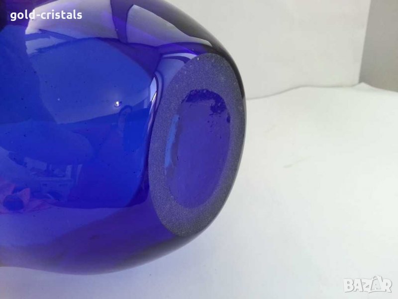 Стъклена кристална купа кошница син кобалт ръчна изработка кобалново синьо ретро арт декор винтидж коликция стара антикварни предмети обзавеждане за дома и семейството подходяща за подарък за ценители и колекционери