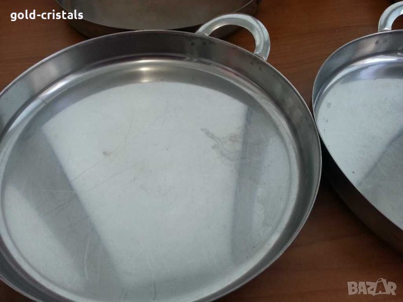 Стара българска алпака хром чинии тавички капанчета неръждаеми масивни тежки дебел материал сервиз комплект сет лот ретро арт декор винтидж колекция старинни антикварни предмети обзавеждане за дома и семейството подходящи за подарък за ценители и колекционери на тигани с дръжки тави с дръжки