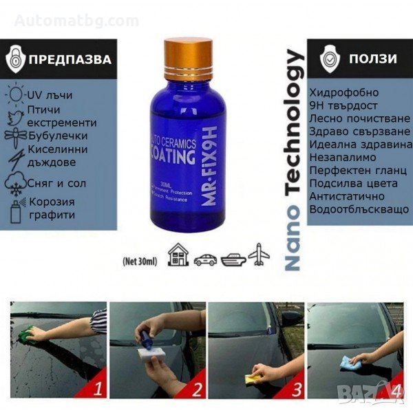 Керамичното покритие e супер хидрофобно покритие от течно стъкло и действа като запечатващ слой върху лака на колата. Осигурява изключително здрава защита с твърдост 9Н, която предпазва от драскотини и осигурява допълнителен блясък. С това покритие предпазвате автомобила си от стареене, избледняване на цвета, киселинни дъждове, слънчева светлина, екстременти на птици, индустриален прах и др.