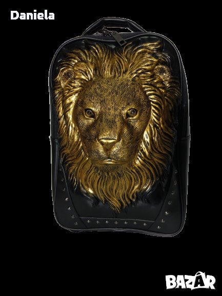 НОВА Черна раница, чанта, 3D златен лъв, регулируеми презрамки → Обява 30388204
