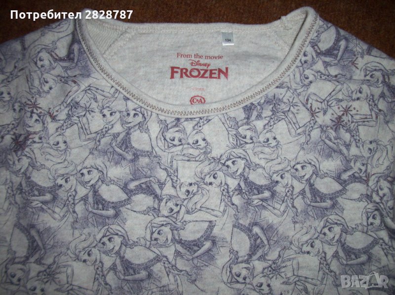 Детска блуза с десени Ана и Елза от филма Замръзналото кралство, обличана 2, 3 пъти в отлично състояние, размер 134 см, закупена от Германия.