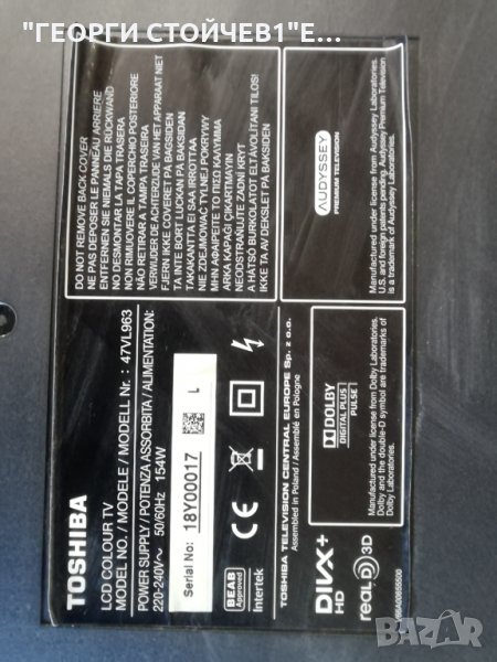 TOSHIBA 47VL963 СЪС СЧУПЕН ДИСПЛЕЙ → Обява 30394891