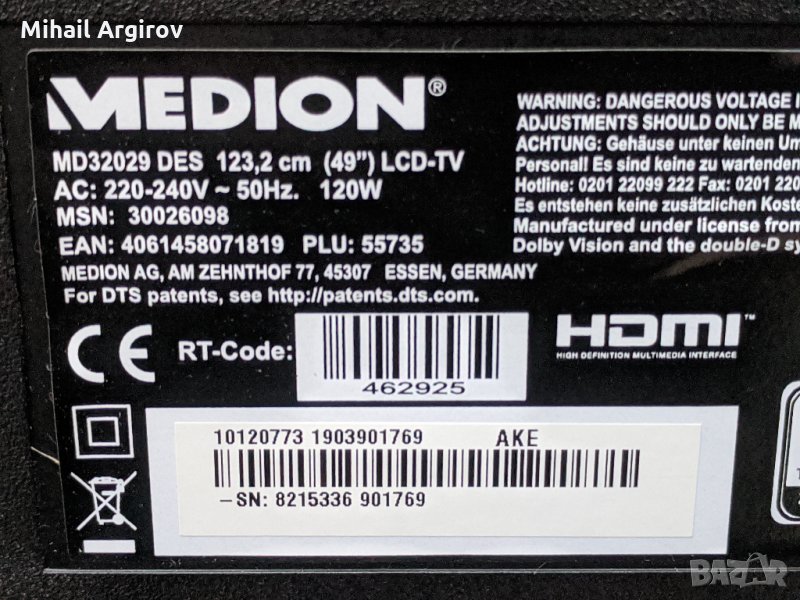 MEDION MD32029 DES 123,2cm /49/ TV-17MB130S-17IPS72-V15 UHD TM120 Ver0.9, снимка 1 - Части и Платки - 30397110  MEDION MD32029 DES 123,2cm /49/ TV-17MB130S-17IPS72-V15 UHD TM120 Ver0.9, снимка 2 - Части и Платки - 30397110  MEDION MD32029 DES 123,2cm /49/ TV-17MB130S-17IPS72-V15 UHD TM120 Ver0.9, снимка 3 - Части и Платки - 30397110  MEDION MD32029 DES 123,2cm /49/ TV-17MB130S-17IPS72-V15 UHD TM120 Ver0.9, снимка 4 - Части и Платки - 30397110  MEDION MD32029 DES 123,2cm /49/ TV-17MB130S-17IPS72-V15 UHD TM120 Ver0.9, снимка 5 - Части и Платки - 30397110  MEDION MD32029 DES 123,2cm /49/ TV-17MB130S-17IPS72-V15 UHD TM120 Ver0.9, снимка 6 - Части и Платки - 30397110  MEDION MD32029 DES 123,2cm /49/ TV-17MB130S-17IPS72-V15 UHD TM120 Ver0.9, снимка 7 - Части и Платки - 30397110  MEDION MD32029 DES 123,2cm /49/ TV-17MB130S-17IPS72-V15 UHD TM120 Ver0.9, снимка 8 - Части и Платки - 30397110  MEDION MD32029 DES 123,2cm /49/ TV-17MB130S-17IPS72-V15 UHD TM120 Ver0.9, снимка 9 - Части и Платки - 30397110  MEDION MD32029 DES 123,2cm /49/ TV-17MB130S-17IPS72-V15 UHD TM120 Ver0.9, снимка 10 - Части и Платки - 30397110 1/10