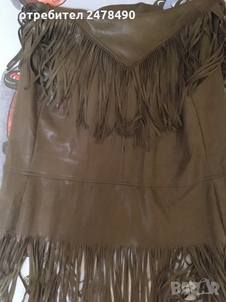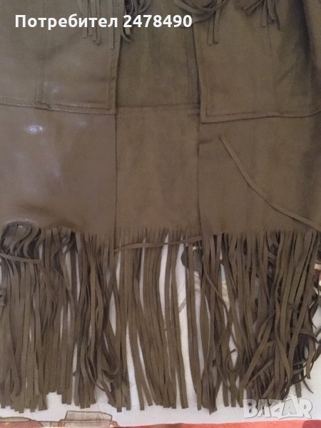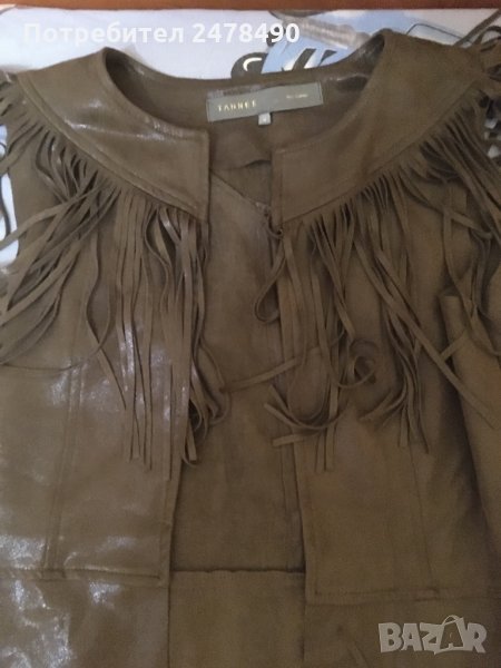 Кожен елек с ресни,маслено-зелен цвят.
