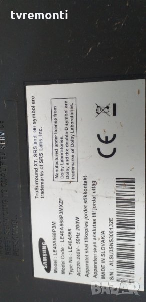 INVERTER SSB400W16V01 SAMSUNG LE40A455C SAMSUNG МОДЕЛ LE40A568 дисплей LTA400HA03 SAMSUNG МОДЕЛ LE40A568 panel LTF400HA03 Борда е гарантирано работещ Демонтиран от телевизор SAMSUNG МОДЕЛ LE40A568 със счупен дисплей LTA400HA03 тествана от нашия техник