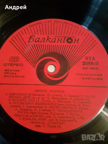 Грамофонна плоча Христо Кидиков → Обява 30399138