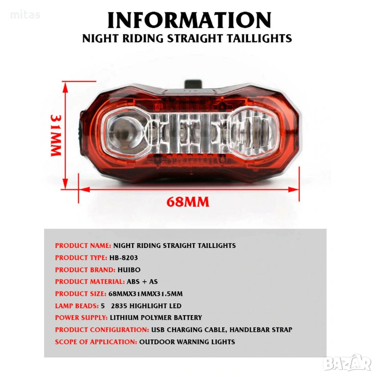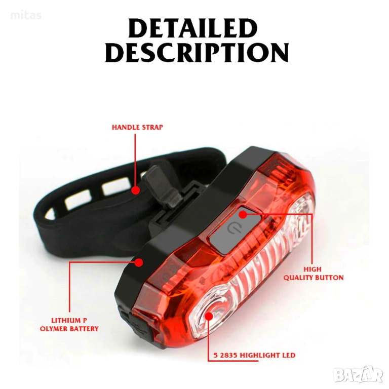 - Тип продукт: Задна LED светлина за велосипед