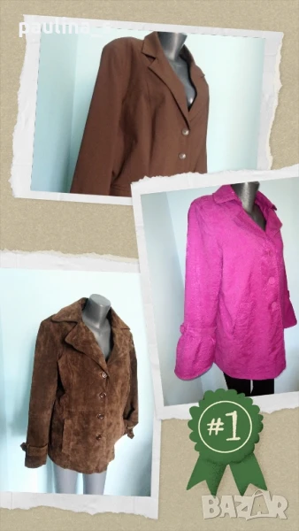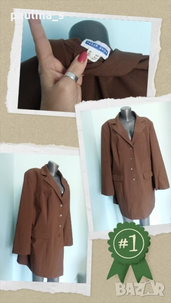 2️⃣. Колаж / 2XL / 4XL - Дамско сако тип манто от фин габардин "meine grobe". Цената е крайна 39,99лв. Преходно сако тип манто, голям размер 4-5XL. Моделът е елегантен и обран, с леко вталване и цепка отзад, материята е фин габардин с лека еластичност - немачкаем. Снимките са на малък размер манекен.