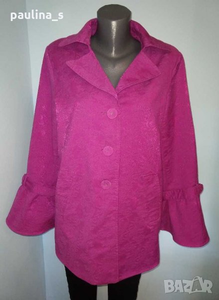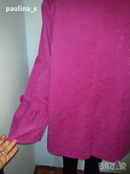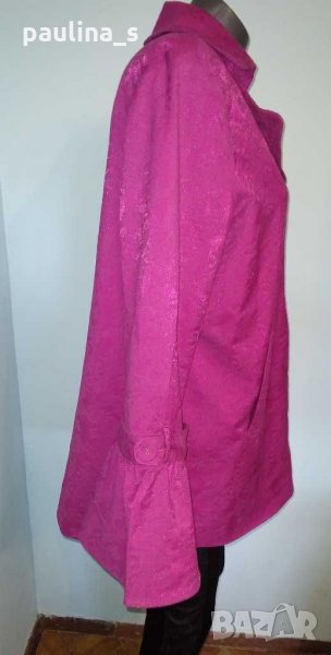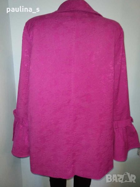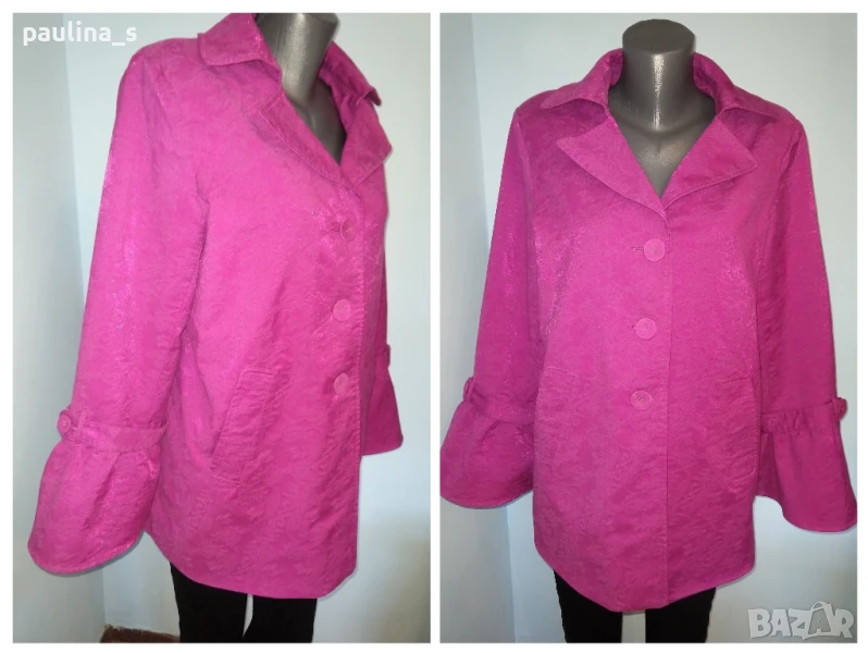 1️⃣. Колаж / 2XL / 4XL - "Simonton". Цената е крайна 49,99лв. Разкошно манто тип шлифер в екзотичен цвят. Моделът е семпъл, за сметка на ръкавите. Платът е еластичен и релефен с бляскащи нишки за разкош. Дрехата има аристократичен, но и закачлив аутлук. Разкош в розова феерия.