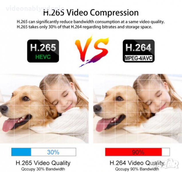 Предимствата на H.265: Трансфера на видеопотока е 80% по-ефективен от H.264, като намалява размера на файла до 40% при същото качество. Намалява видео шума и увеличава динамичния диапазон.