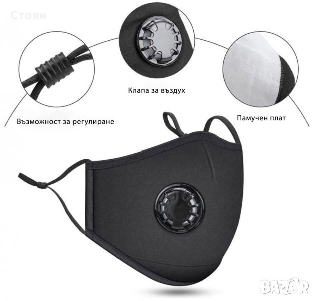 Предпазна маска + 2 сменяеми филтъра с активен въглен PM2.5