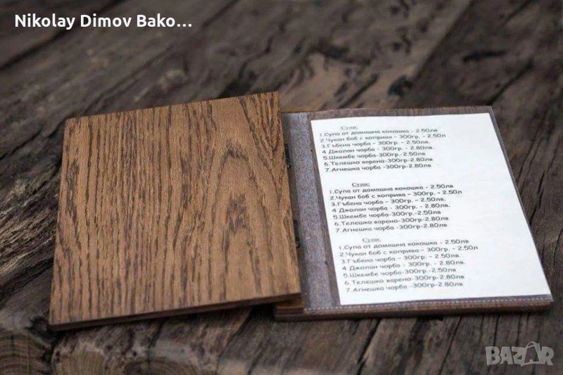 Производство на менюта,"резервиращи" табели и сметници в различни формати за обществени заведения, размери и индивидуално избран шрифт, текст и изображение(лого). Цена, надпис и размер се договарят предварително. За количества отстъпки.Тел:0886435841 Николай Баковски