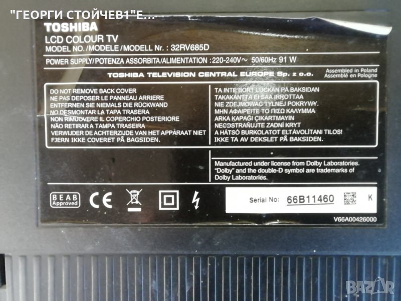 TOSHIBA 32RV685D СЪС СЧУПЕН ДИСПЛЕЙ → Обява 30430572