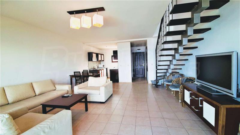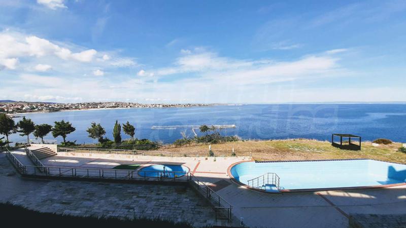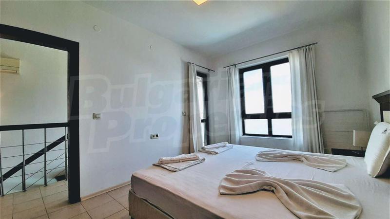 Предлагаме ви за продажба мезонет с две спални в модерен апарт-хотел, построен през 2008 г. Жилището разкрива невероятна гледка към лазурното синьо море, старата и нова част на град Созопол и остров Св. Иван . Разположен е живописно на върха на скалите, на първа линия над самото море, в новата част на града, в Райския залив на местността Буджака.