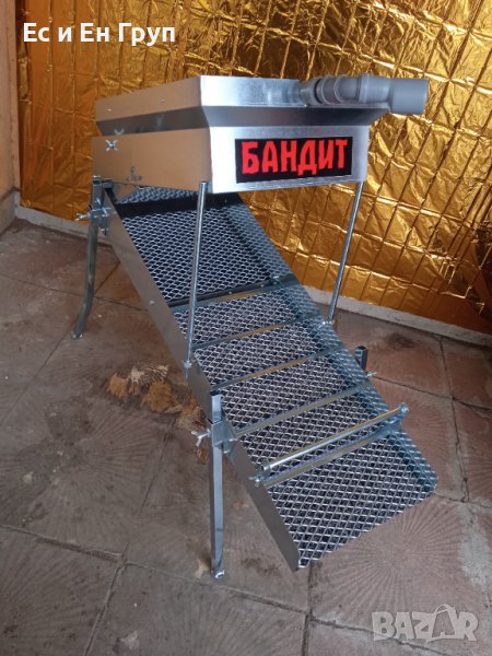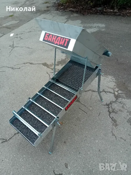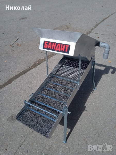 Улеят е с размери 1000 на 340мм - миньорски мъх-600мм и едър рифел с просечена ламарина - комбиниран просечена ламарина и тафарети... Бункер - 600/340/120мм с регулируеми дюзи за измиване на материала!!!