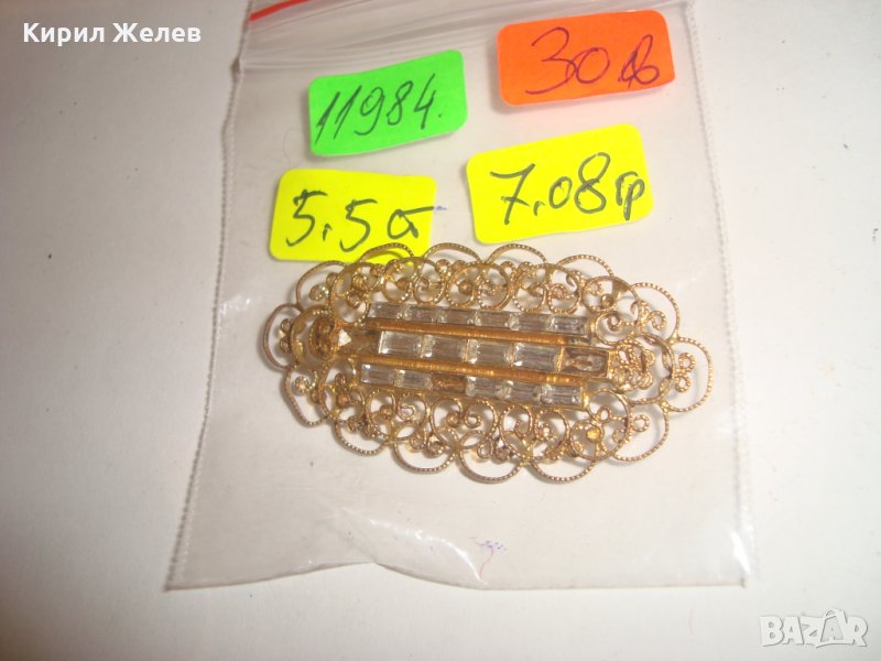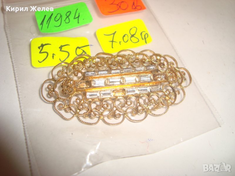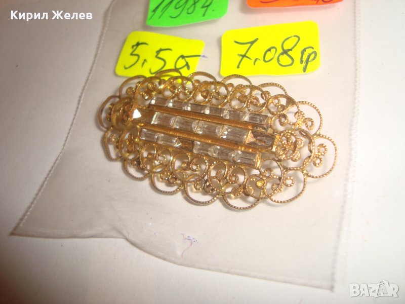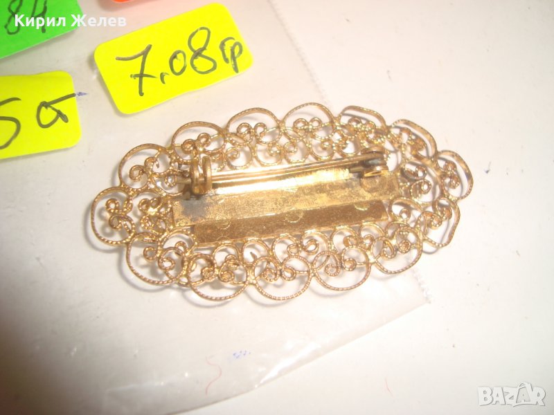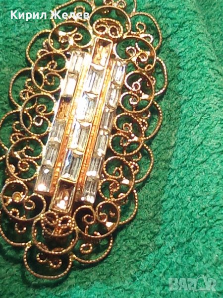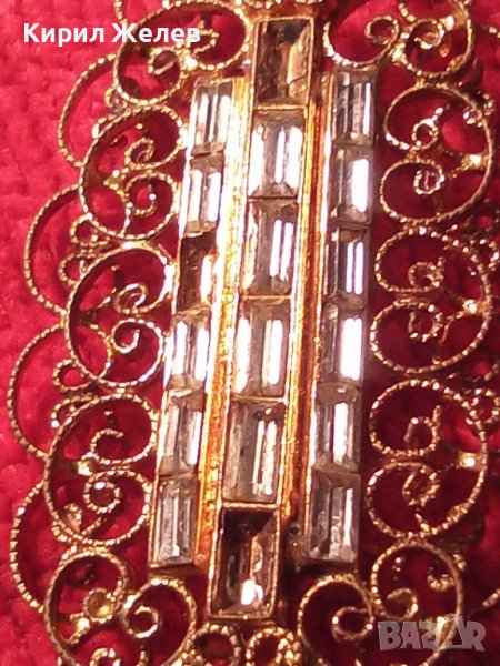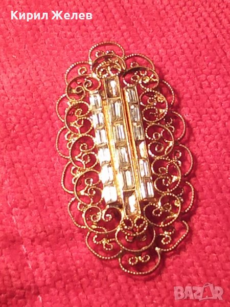 ПОЗЛАТЕН ФИЛИГРАН БОХЕМСКИ КРИСТАЛ АРТ БРОШКА РЕТРО БИЖУ 11984