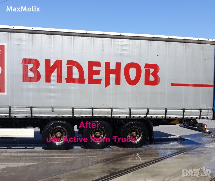 Двукомпонентен препарат за безконтактно измиване на камиони GRASS-Active Foam Truck-1 л. суперконцентрат. Препаратът съдържа специални добавки за безупречно безчетково измиване на камиони, брезенти, тенти, фургони и др. Подходящ за миене както на леки, така и на товарни автомобили. Може да се нанася както с фолмер (пянообразувател), небулизатор спрей или с обикновенна градинска пръскалка. Лесно премахва статичните замърсявания, уличната прах, масло и следи от насекоми. Лесно се отмива и не оставя следи. Не уврежда алуминиеви, никелирани и други повърхности от цветни метали. Съдържа антикорозионни добавки. Благодарение на специалните си съставки e много подходящ за работа в студено време. Високата концентрация на препарата му позволява да бъде изключително икономичен и ефективен. Достатъчни са около 200-300 гр. за измиването на един камион с ремарке.