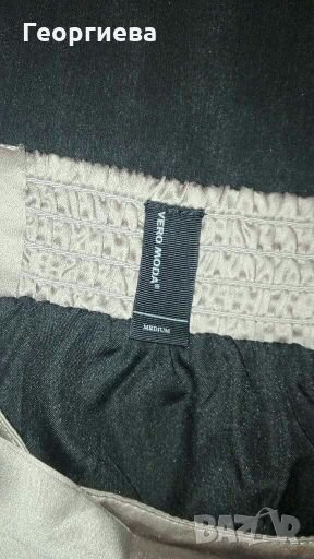 Неразличима от нова!Панделката и презрамките са от сатен, в бежов приятен цвят(мляко с какао).Повърхностния плат е призрачен и стои като намачкан, а вътрешния плат е плътен и изобщо не прозира.Полата завършва с широк подгъв, като подплатата идва леко по-нагоре и около коляното се получава прозрачна ивица.Идеална рокличка за повод, която прикрива несъвършенства(ако има) и много удобна, лека и не се мачка!Миже да се носи и с дантелено боди, или фина блузка.