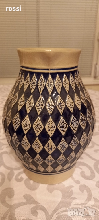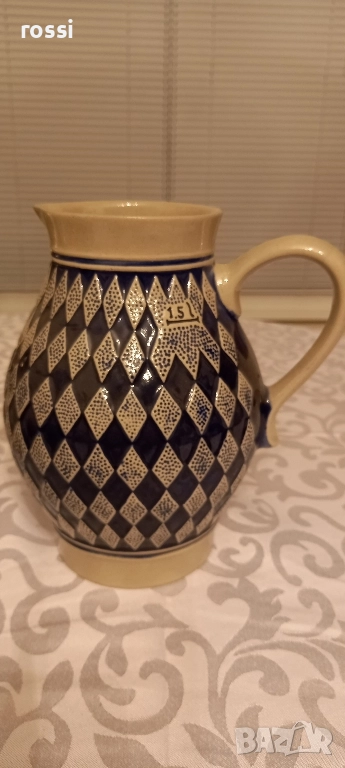 3. Класическа кана с релефна декорация - ромбове в сиво и кобалтово синьо - 1,5 л. - 50 лв./25 евро.