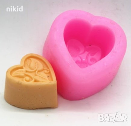 Дълбоко сърце с листа в средата силиконов молд форма калъп за шоколад гипс сапун → Обява 30447932