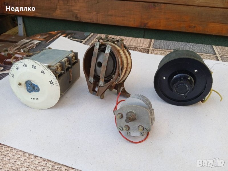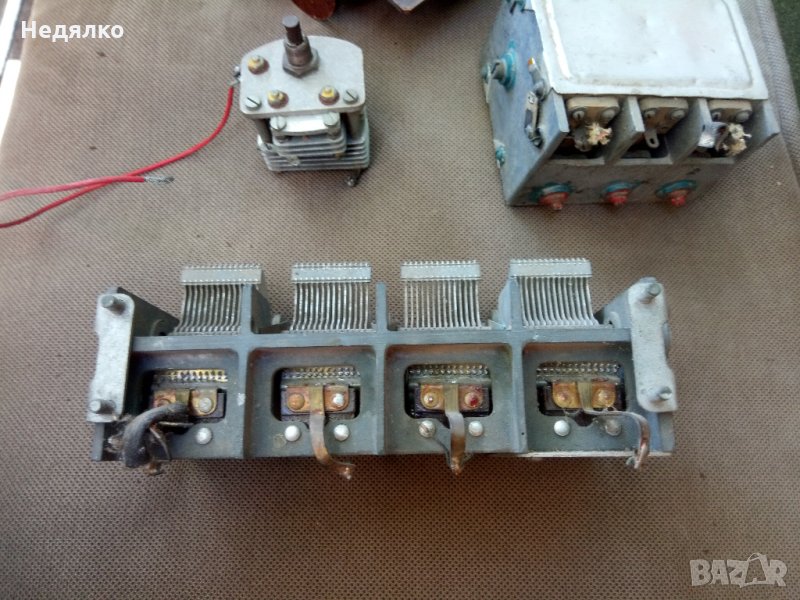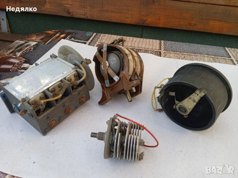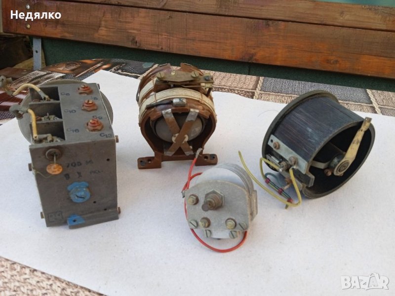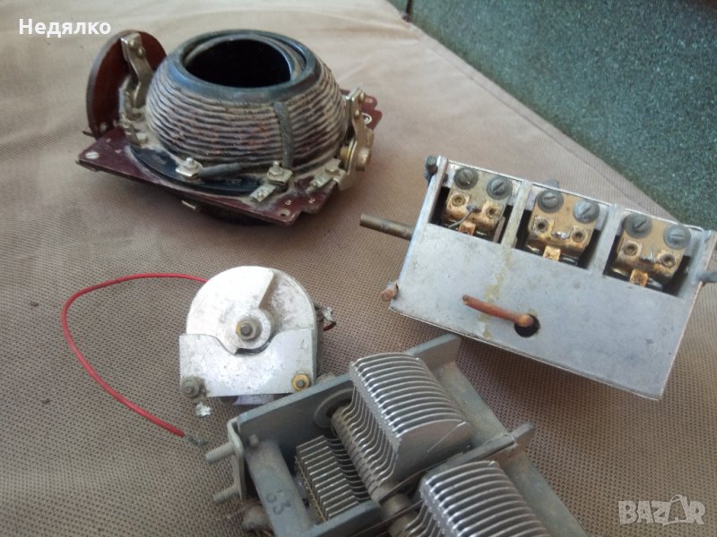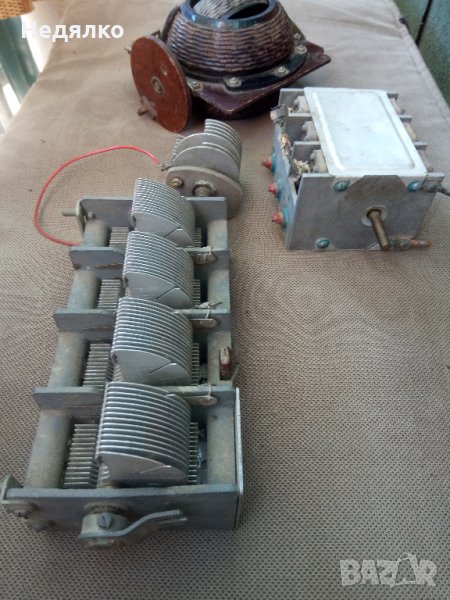 2 Вариометъра,единичния и тройния кондензатори са от немска радиостанция от ВСВ ,а четворния въздушен кондензатор е от радиостанция от руски самолет,също от този период,цена за всичко,не се продават отделно!Ще добавя още няколко дреболии,също немски от 1940-те,бонус.