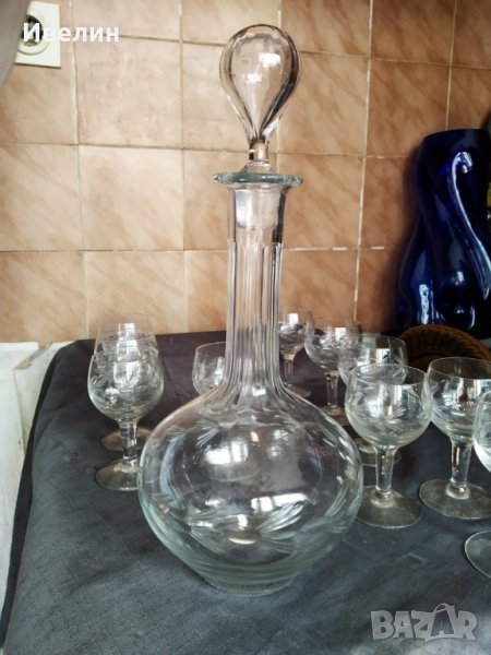 стар кристален сервиз арт деко.гарафа -31см/18см,и 10 чаши 10см/6см.внос от франция.