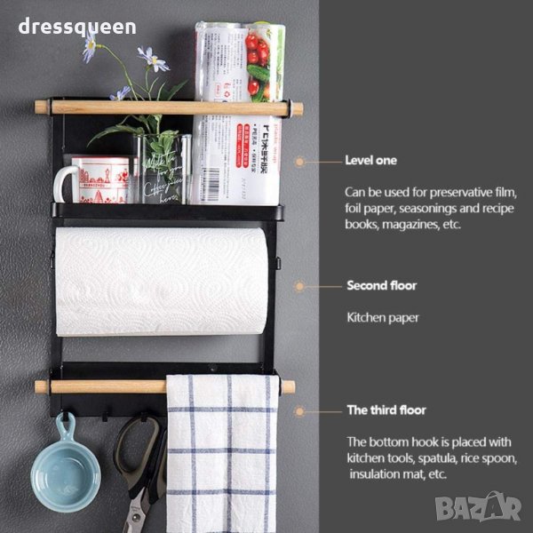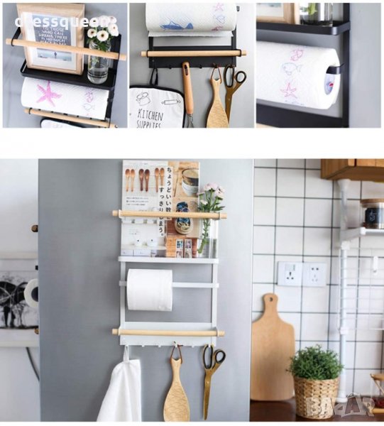 Повечето съвременни кухни са част от всекидневната и мястото е ограничено. Ето защо, този практичен органайзер може да ви е от голяма полза - необходимо е просто да го закрепите за страничната част на хладилника и може да подредите всякакви пособия - черпаци, бъркалки, отварачки, кухненска хартия, кърпи, ръкохватки. Също така бихте могли да намерите и друго предназначение на органайзера и да го поставите там, където имате нужда от него.