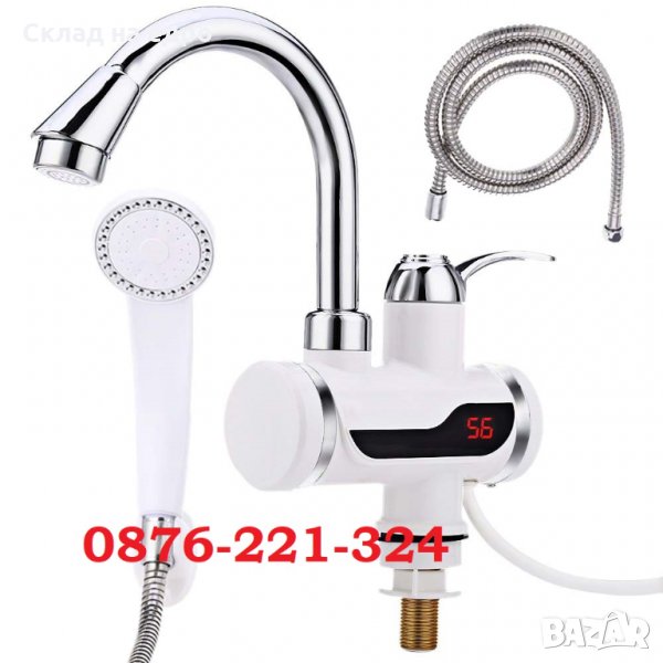 Смесителна батерия с вграден проточен бойлер за вертикален(за плот) монтаж и подвижен душ. Мощен 3000W нагревател за стена.