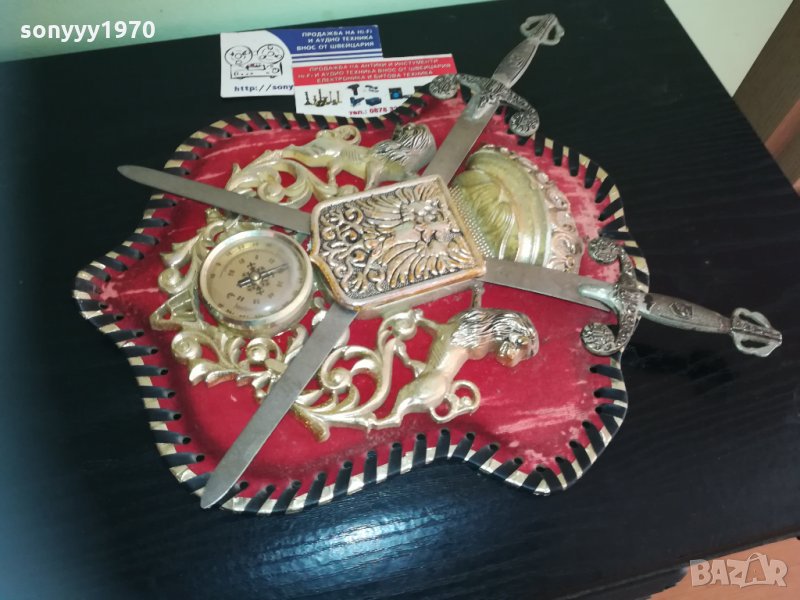 внесен вчера от франция-26х21см-красота стил класа-за колекция декор-мед/месинг-с лъвове термометър и мечове-поръчки само тук в саита! от днес 28.02.22г пращаме със спиди или еконт с преглед и тест след превод на капаро за куриерската услуга поради зачестили некоректни потребители-поръчки само в тук в саита! по телефона и със смс не! краини цени! бартери не правиме! всеки ден нови неща-още над 18000 обяви тук