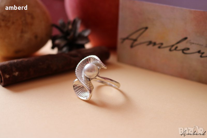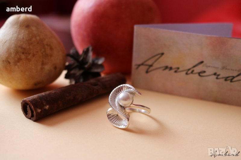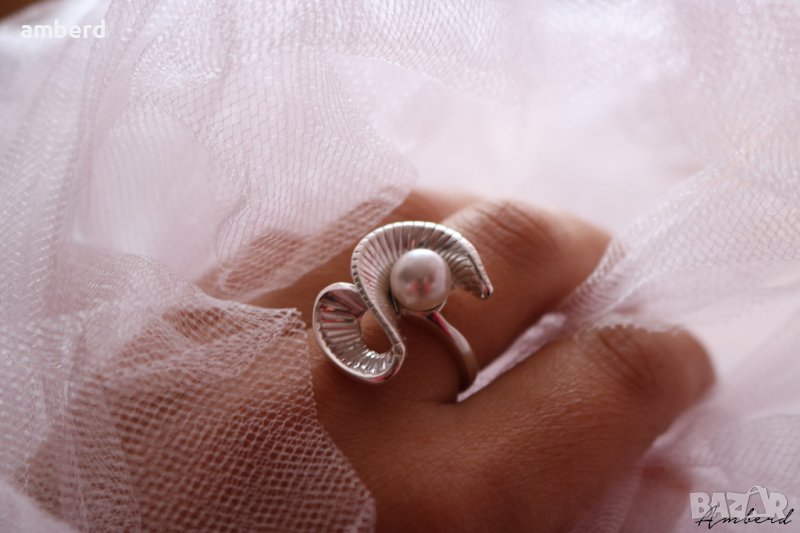 Невероятно красив и елегантен пръстен, изработен от сребро проба 925 и бяла култивирана перла. Вътрешен диаметър 17мм.