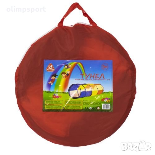 Тунел за провиране MAX, 180х46 см нов. Сгъваем в чанта, което го прави удобен за съхранение и пренасяне. Вградената спирала от стоманена тел прави сгъването и разгъването бързо и лесно. Изработен от здрав найлонов плат. Разполага с два участъка с мрежа по цялата дължина, които предоставят възможност за наблюдаване на децата в него. Пълзенето през тунела упражнява координацията между ръце и крака, развива чувството за ориентация и преди всичко е много забавно. Предназначение: за игри в закрити помещения – вкъщи, в детската градина или училището. Подходящ за отборни състезателни игри в детската градина и в началните класове в училище. Дължина - 180 см. Диаметър на отвора - 46 см. Материал - текстил, метал. Тегло - 550 г. Подходящ - за деца над 3 години. количество