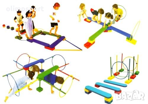 7. Дъски за равновесие – 4 броя с размер 81.5х14х4 см, с 4 единични и един троен отвор за блокчета