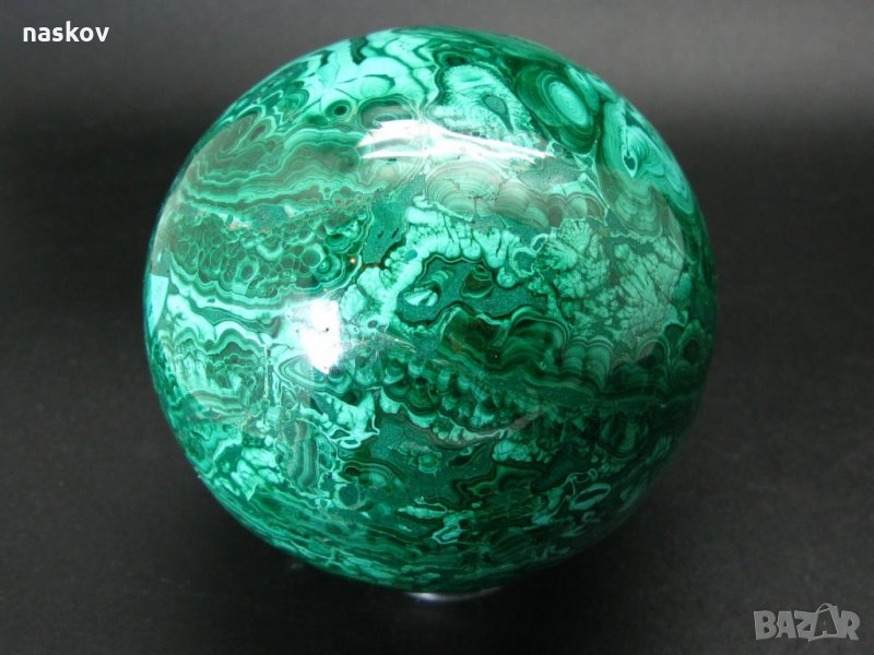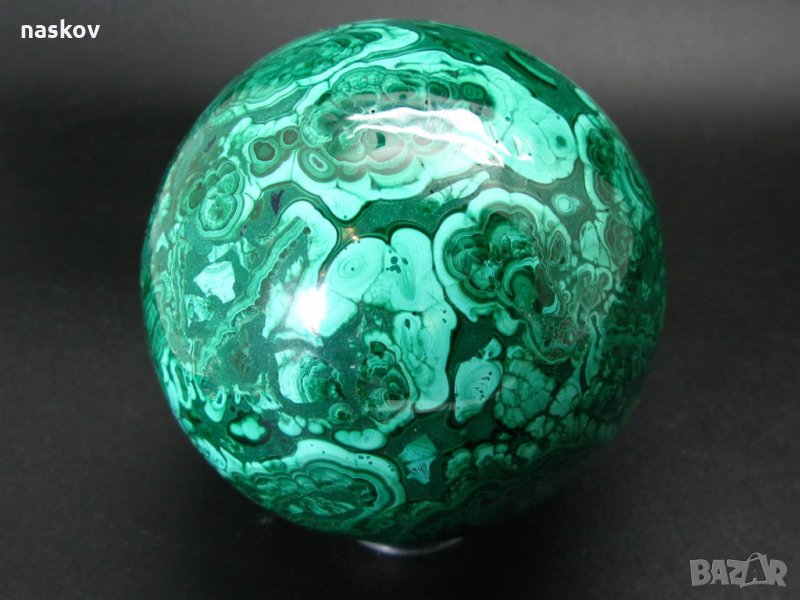 - Малахит (Снимки 1, 2, 3, 4) (Конго) - Диаметър: 9 см, тегло: 1436 грама. Цена: 1500 лв;