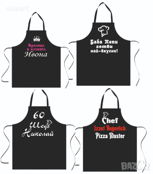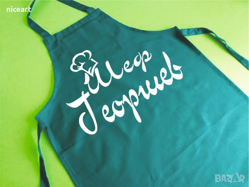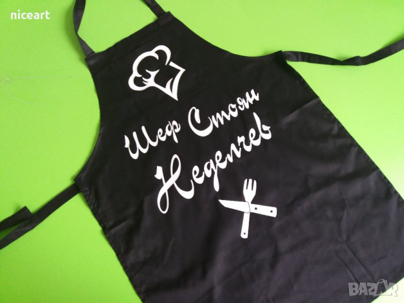 При нас може да поръчате готварска престилка с персонален надпис.Цена 27-29лв според големината и цветността на щампата.