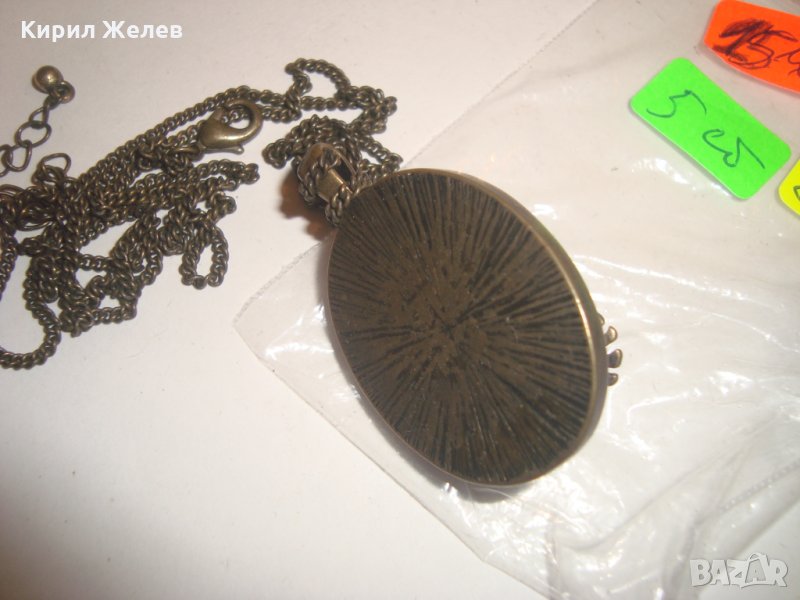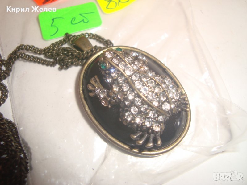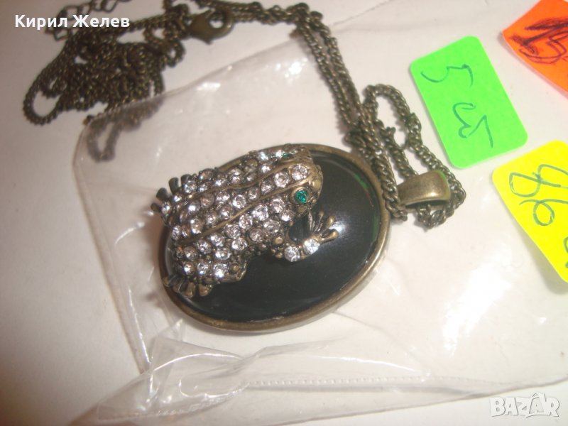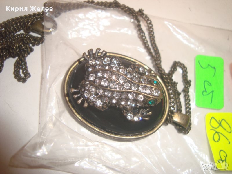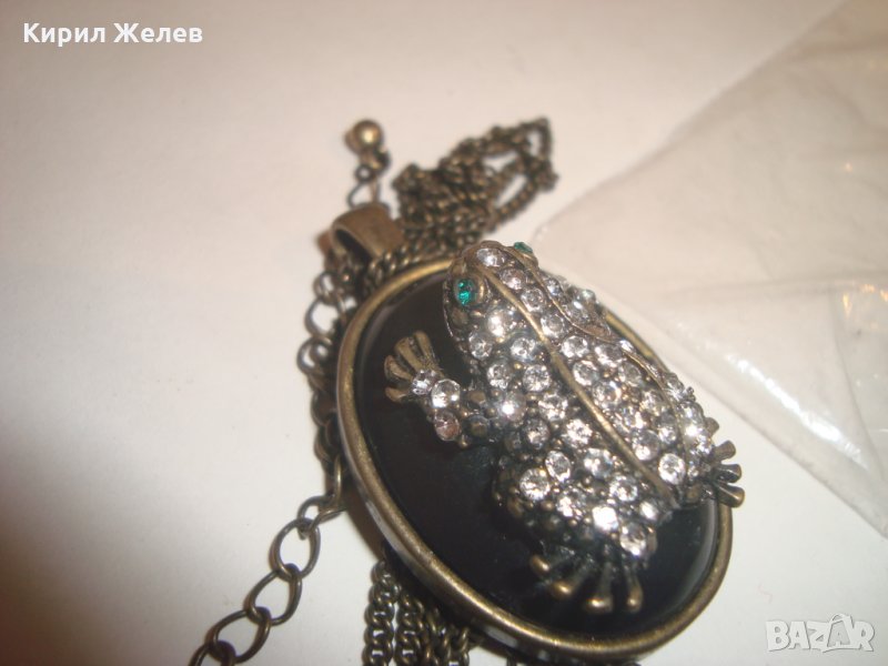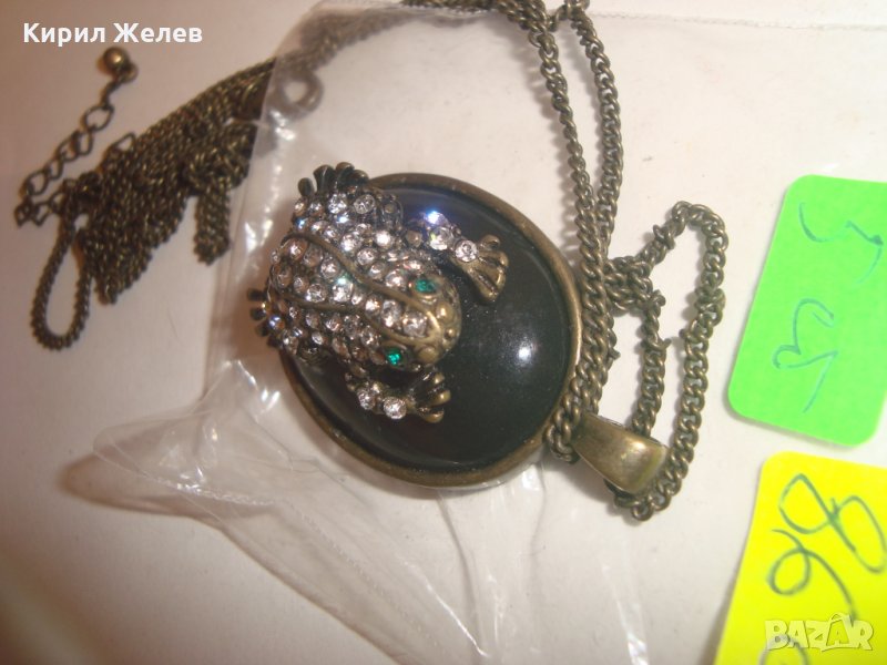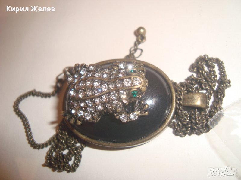АРТ НУВО ЖАБКА със СКЪПОЦЕННИ КАМЪНИ и ЕМАЙЛ ВИНТИДЖ КОЛИЕ МЕДАЛЬОН с ВЕРИЖКА БРОНЗ 12353