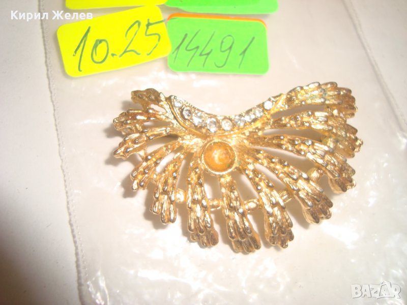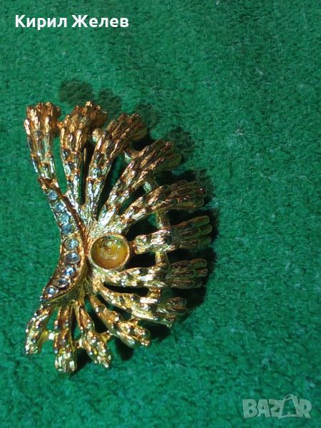 РЕТРО ПОЗЛАТЕНА БРОШКА с БОХЕМСКИ КРИСТАЛИ 14491