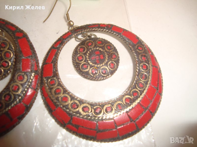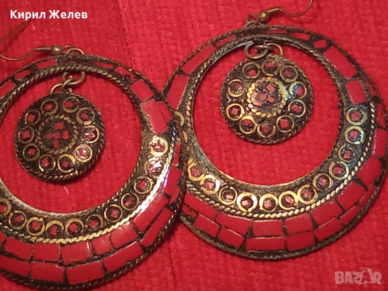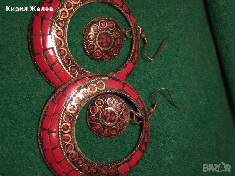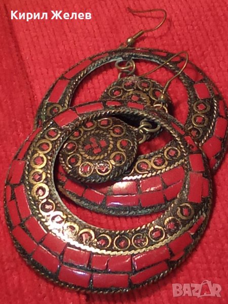 СТАРИ ОБЕЦИ РЪЧНО ИНКРУСТИРАН ЧЕРВЕН КОРАЛ БРОНЗОВИ ОСМАНСКИ ОБЕЦИ КОВАНИ 2523