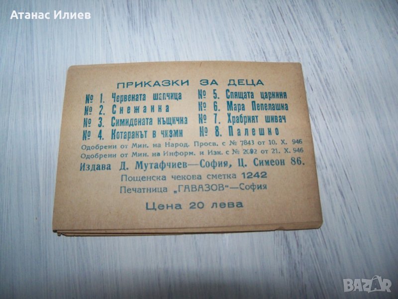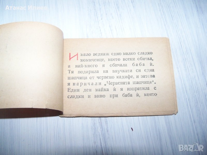 Изключително рядка малка книжка "Червената шапчица" издадена в поредицата "Приказки за деца" през 1946г. под №1. Издател е Д. Мутафчиев, печатница "Гавазов" - София. Книжката е с меки корици, 16 стр. със 7 илюстр. Размери 8х6 см. В поредицата са издадени общо осем книжки, като почти няма оцелели екземпляри