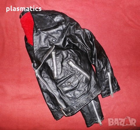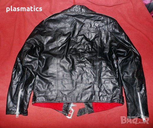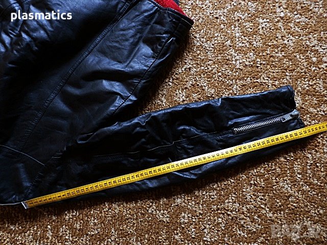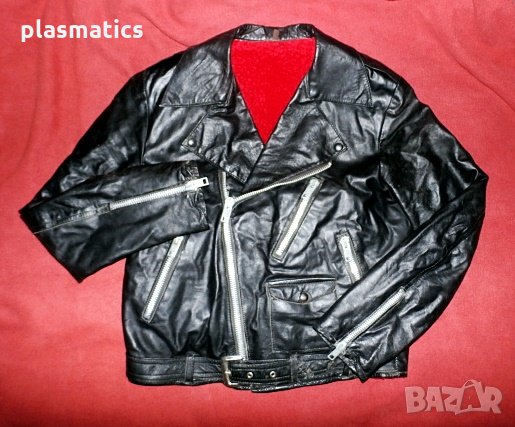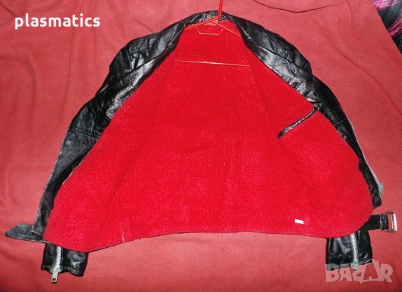 Яке от естествена кожа с подплата(каракул), с 4 джоба и метални ципове. Дължина 60см, ширина 58см, ширина на раменете 45см, дължина на ръкава 59см, дължина на подмишницата 30см. Якето е изключително запазено и няма забележки.