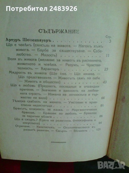 Щ о е човекъ, любовь, смъртъ?, Артур Шопенхауер Цена 30 лв.
