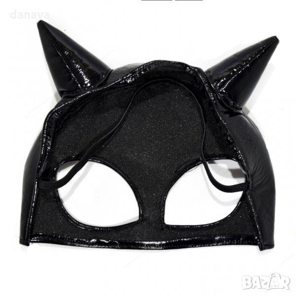 Парти маска Черна котка. Изработена от мека изкуствена кожа. С ластик за удобно поставяне. Перфектен акцент за костюма за Хелоуин ако сте решили да се маскирате като Жената котка.