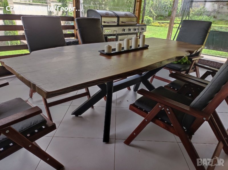 Трапезна маса, изработена от внимателно подбрана дървесина. Масата от снимките е подходяща за 4 или 6 човека - 140х80 см, но може да бъде изработена в размери по Ваше желание. Изключително стабилна и масивна маса, впечатляваща с лекота и естествени извивки, което засилва красотата и.