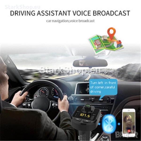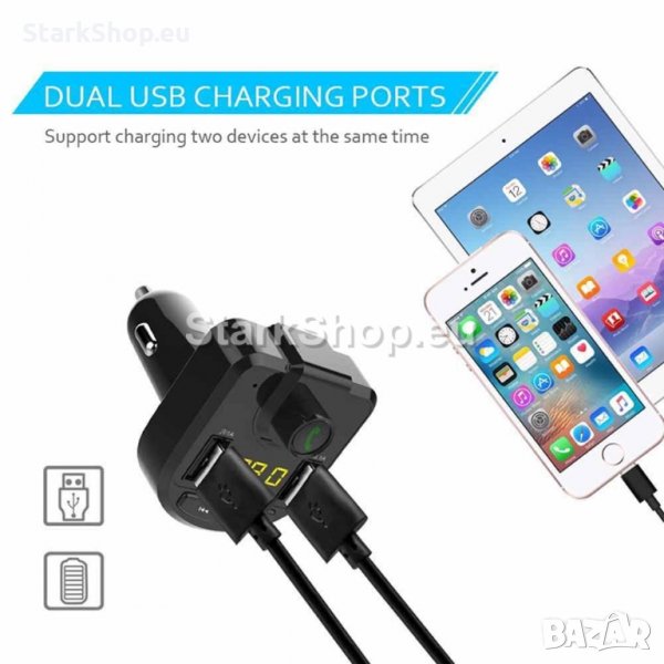 7в1 ФМ Трансмитер работещ с Bluetooth. Нужно е само да включите блутут функцията на телефона си и да го сдвоите с трансмитера. Има и много удобна за измерване на напрежението на акумулатора(волтметър).