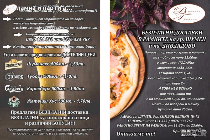 на флаерна хартия 130 гр. или 350 гр. с УВ лак гланц