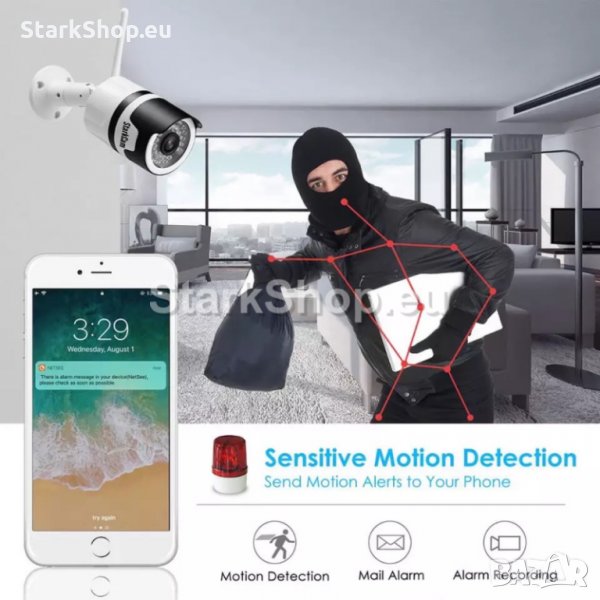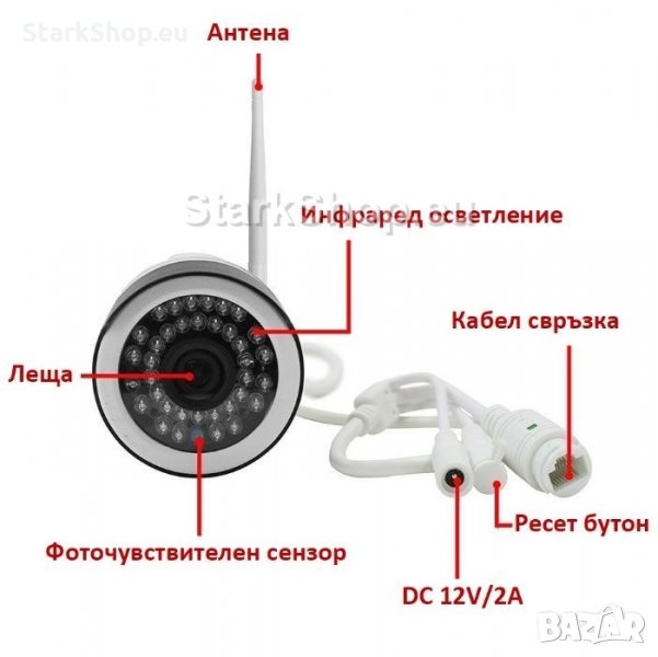 *Захранване за камератаПредставяме ви безжична FullHD IP WiFi камера със супер качество и нощно виждане за външен монтаж. Широк ъгъл на картината с много инфрачервени диоди и двупосочно аудио. Устойчива на всякакви условия.