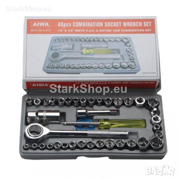Удобен комплект гедоре в куфар от 40 части AIWA, подходящо за малки ремонти в дома или автомобила.