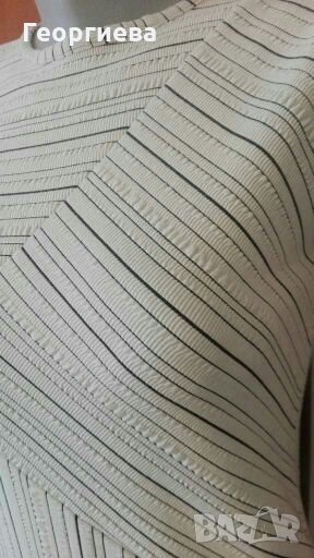 Стилна рокля от плътна материя, с интересна кройка и цветове слонова кост и черно.Платът е полиестер с еластан.Роклята е чисто нова, без хартиен етикет.