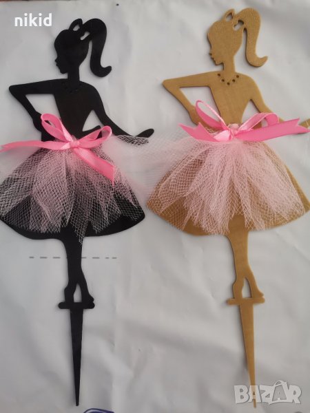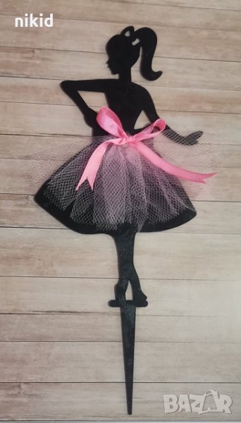 Дама Момиче рокля тюл черен златен пластмасов топер украса декор за торта рожден ден моминско парти → Обява 30504817