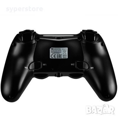 Безжичният контролер на Canyon гарантира ултимативно гейминг изживяване с вашия PlayStation 4. Новото при него е вградения тъчпад, позволяващ повече контрол в играта. LED подсветката може да се настрои в любимия ви цвят. Вибрациите ще ви накарат да усетите всеки сблъсък или стълкновение в играта. Контролерът работи с обхват до 10 метра от приемника, ползвайки бърза безжична връзка. Бутоните M1-M4 могат да се препрограмират и настроят според вашите желания. С включване на турбо режим се задейства и режим за повторение на действието. Забравете за батериите – контролерът се презарежда и работи до 10 часа с едно зареждане.